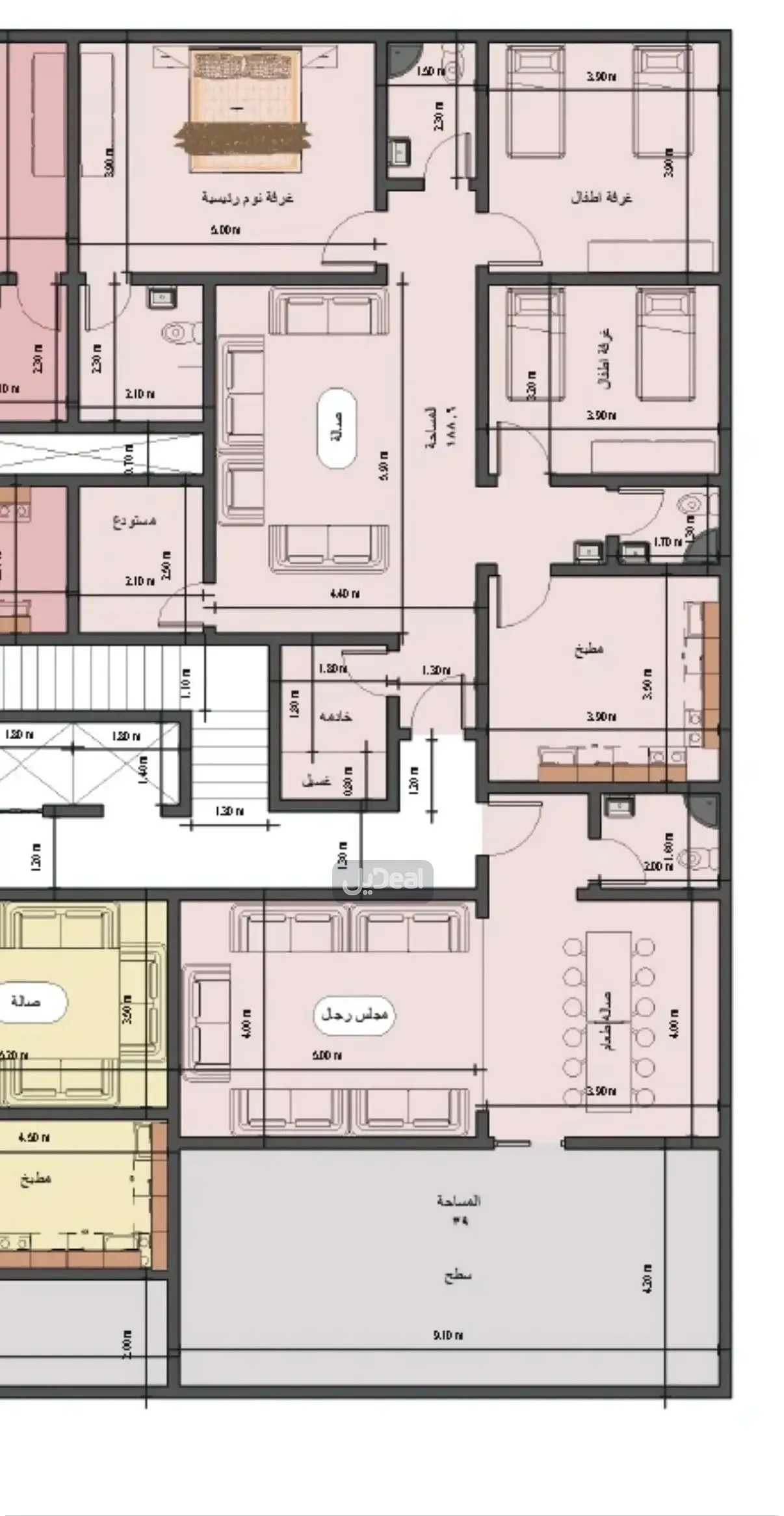 * مدخلين- مجلس مع صالة-مطبخ-4 دورات مياه