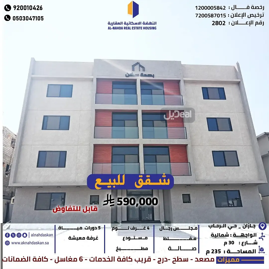شقق للبيع جازان حي الرحاب