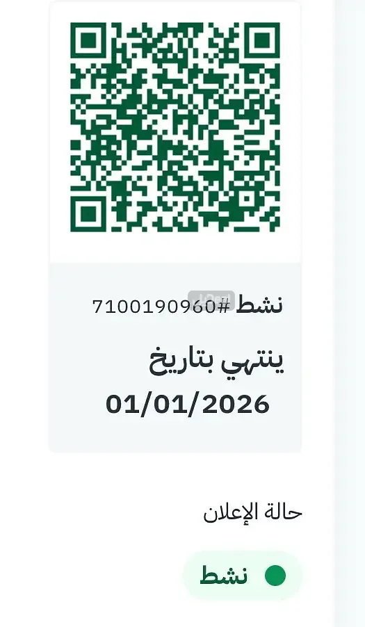 اطلب عقارك الآن تاريخ انتهاء رخصة الإعلان 1/1/2026