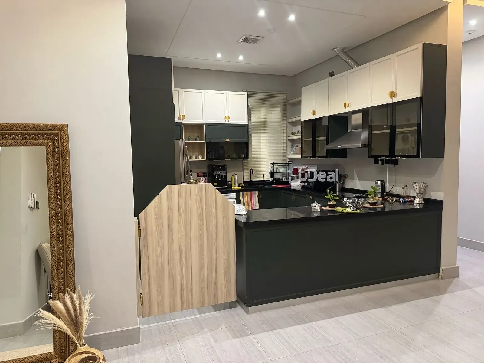 - الشقة مؤثثة اثاث متكامل من مجلس وصالة وغرفة طعام وغرف نوم ومطبخ واجهزة كهربائية وتلفزيونات