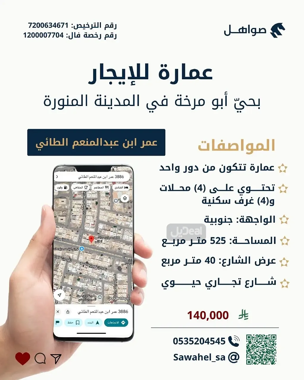 عمارة للإيجار بحي أبو مرخة بمنطقة المدينة المنورة
