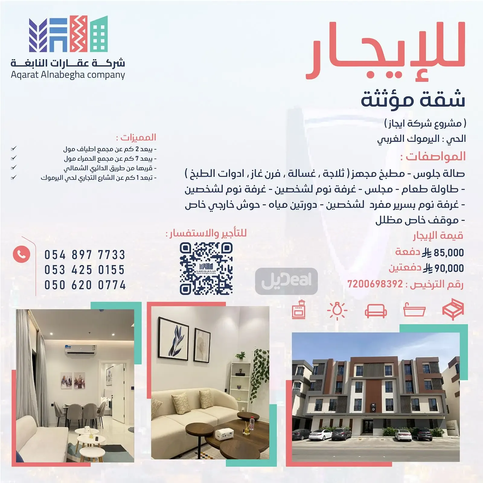 سعر الإيجار | Rent: دفعة واحدة: 85,000 ريال | One Payment دفعتين: 90,000 ريال Two Payments