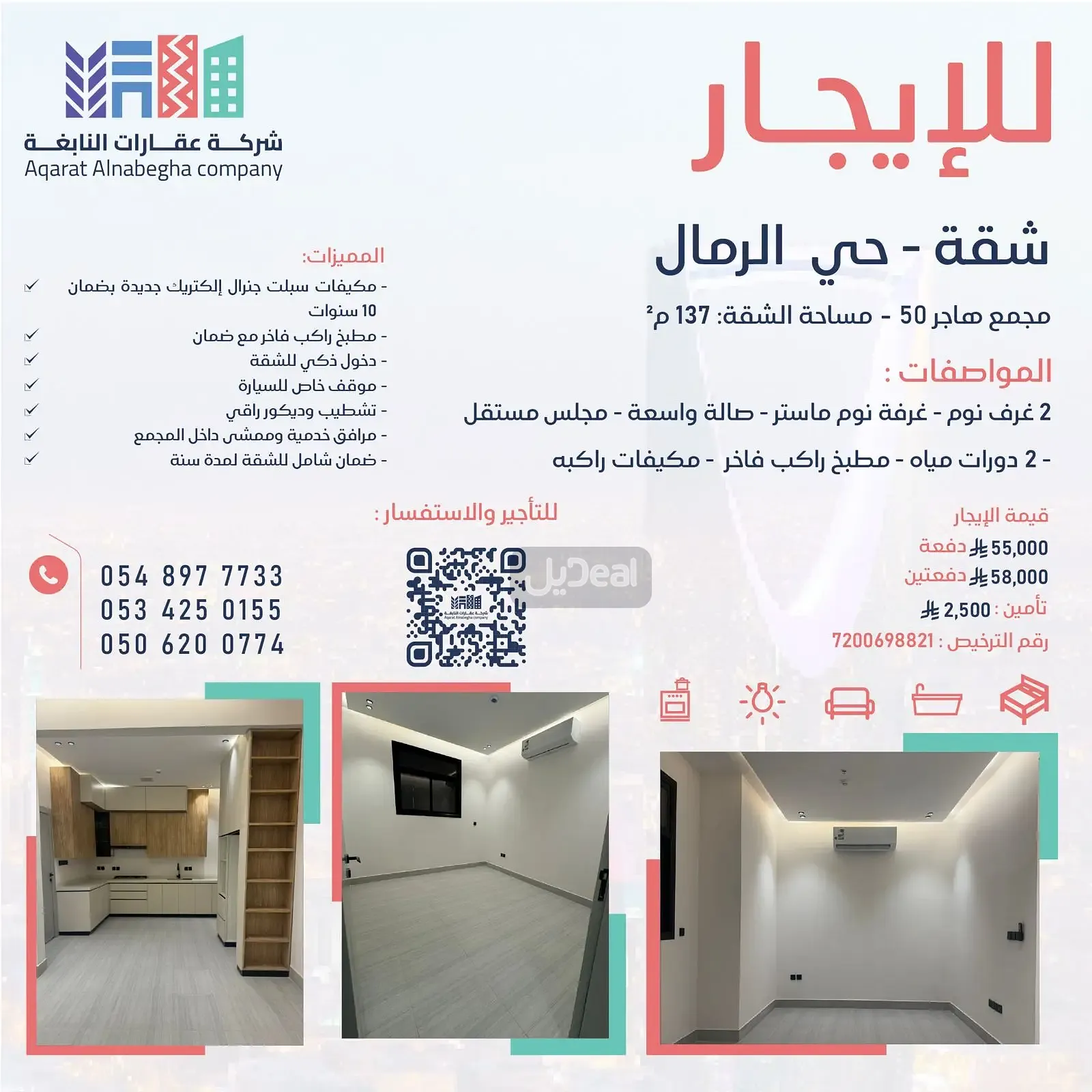 شقة للإيجار - الرياض / حي الرمال (مجمع هاجر 50) | Apartment for Rent – Riyadh / Al Rimal District (Hajar 50 Compound)