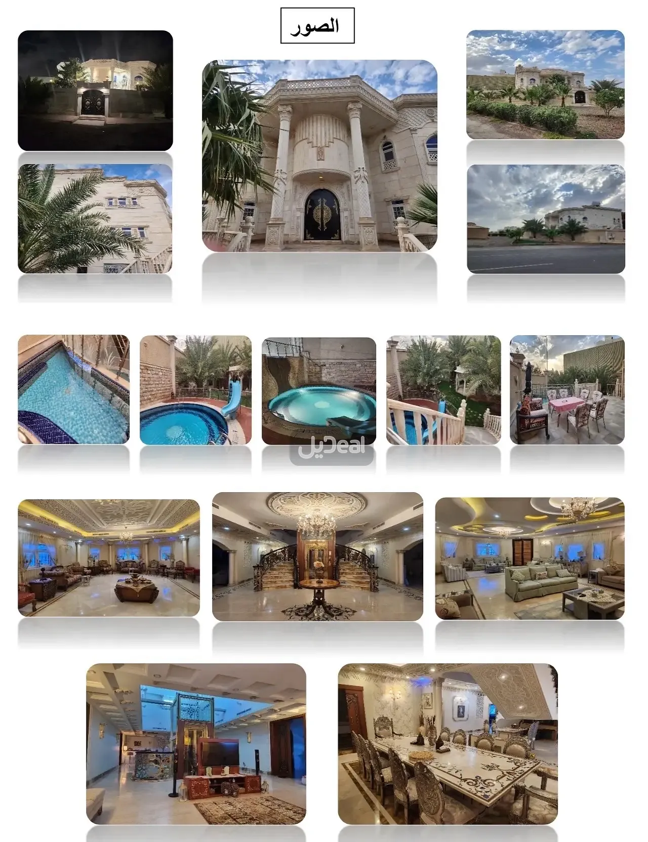 عدد ٤ صوالين منها ٢ على مدخل القصر الرئيسي و ٢ في دور الحديقة.