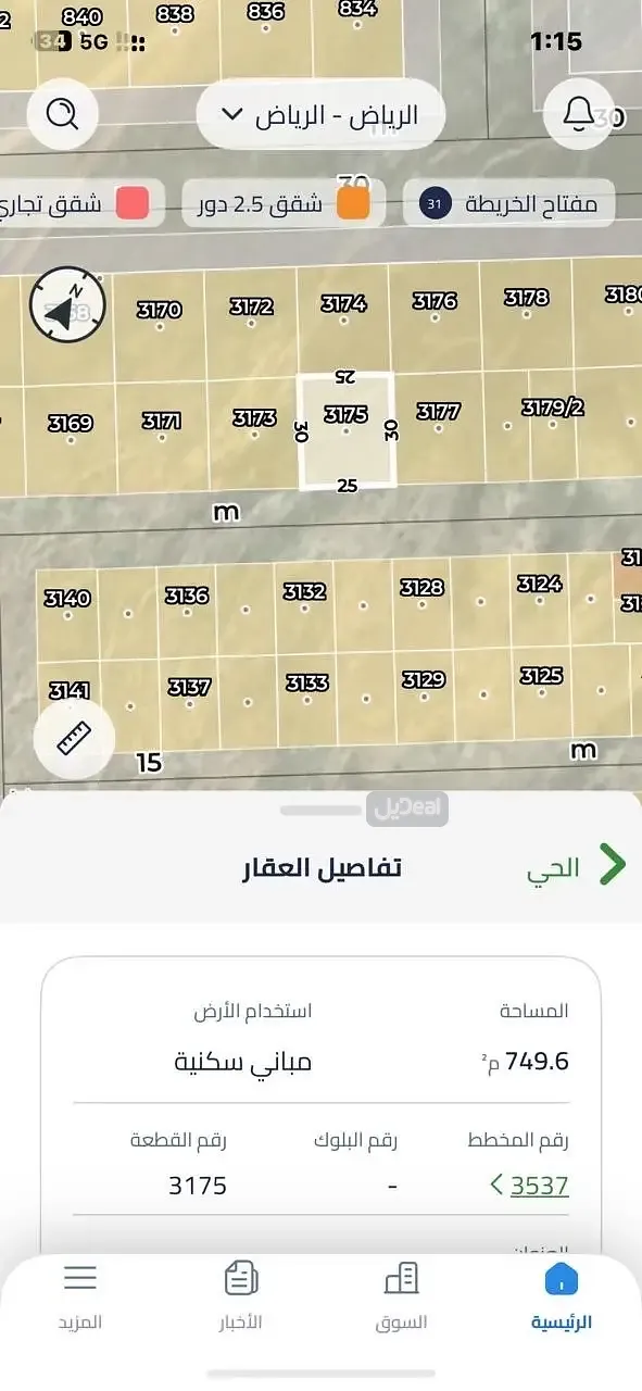 نأمل مطابقة الموقع على الخريطة مع الموقع حسب الصك: