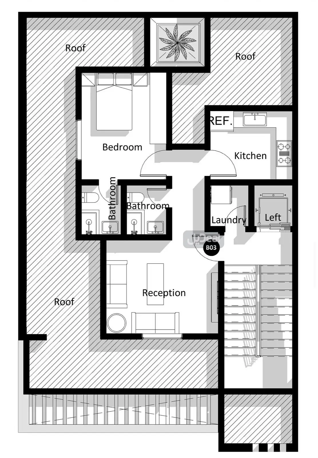 - بلكونه اخرى جانبيه بالامكان سقفه واستخدامها كغرفه .
