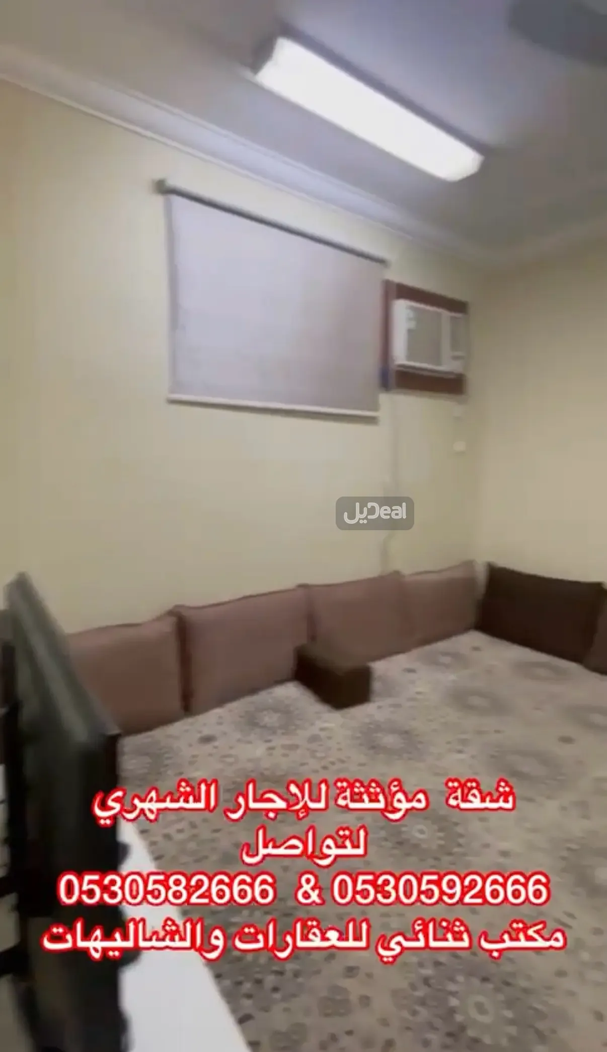 للإجار شقة موثثة بالكامل بسعر مغري جدا موقعها مناسب جدا تتكون من مجلس ودورة مياه وغرفتين وصالة ومطبخ ودورة مياه لتواصل 0530582666 او 0530592666 📲 زورونا في مكتبنا موقع المكتب على قوقل ماب مكتب ثنائي للعقارات والشاليهات اوقات الدوام والتواصل من العصر حتى ساعة 9 مسائا شاكر ومقدر تواصلكم معنا وملاحظة لا تحول مبلغ إلا بعد مشاهدة الشقة وزيارتنا لتمكن من تخليص الاجراءات العقد شاكرين ومقدرين تفاهمكم معنا