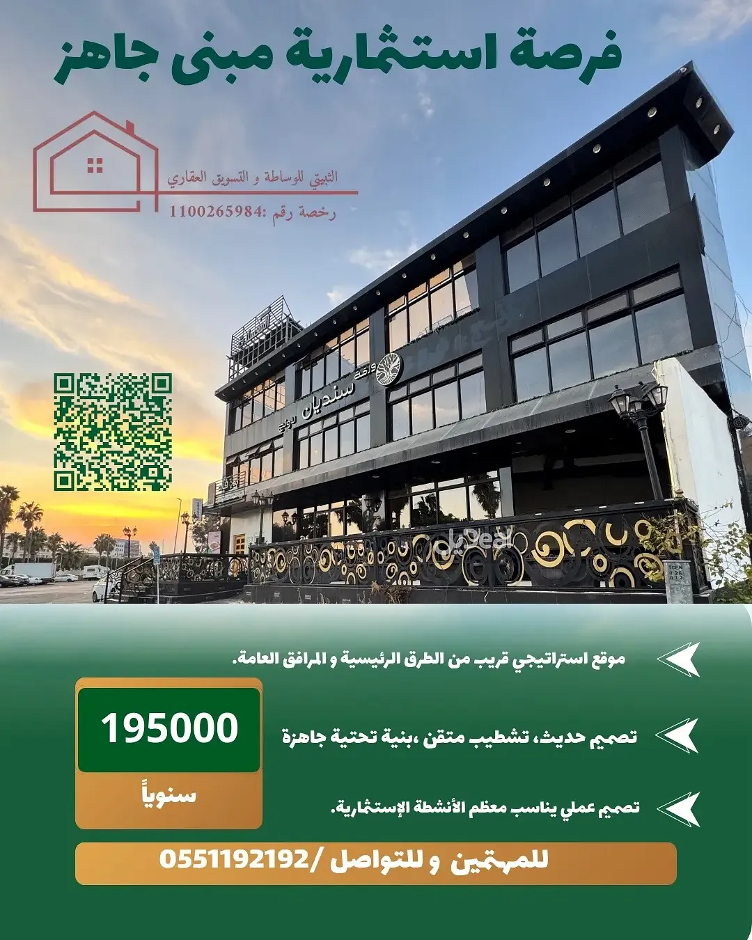 يعلن الثبيتي للوساطة و التسويق العقاري رخصة فال / 1100265984