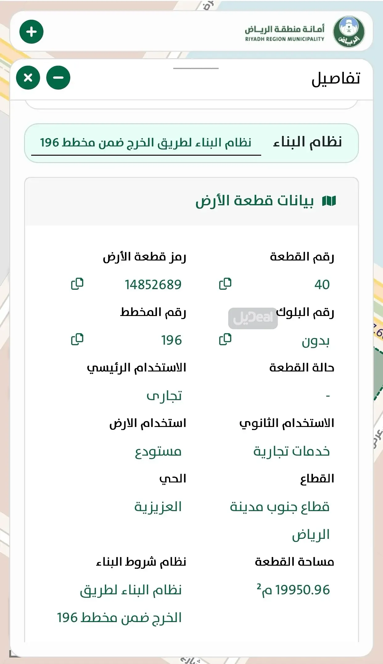 شمالا شارع: 40 متر بطول: 200 متر