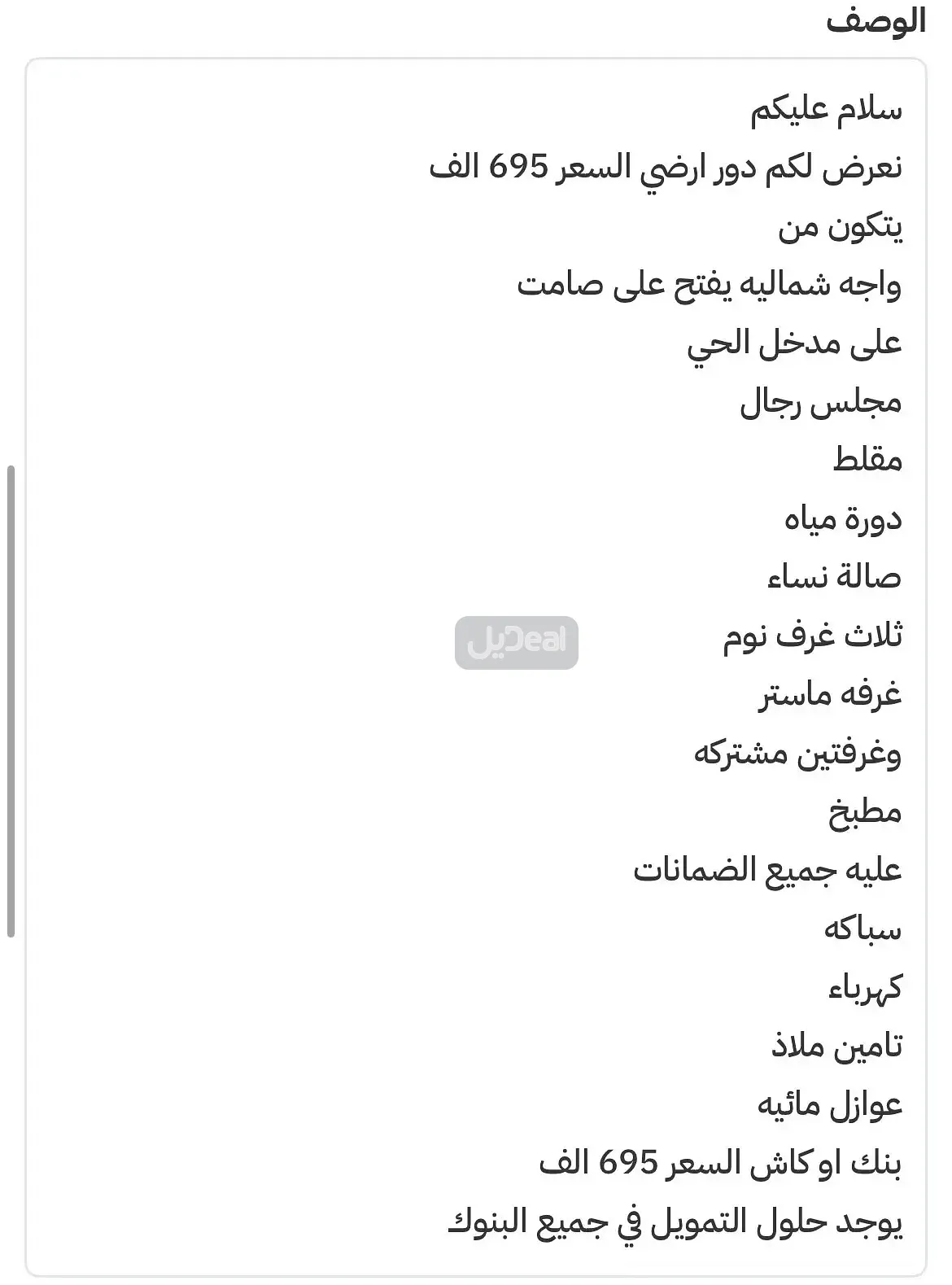 خدمات العقار كهرباء - مياه - لايوجد خدمات - ألياف ضوئية - تصريف الفيضانات - هاتف