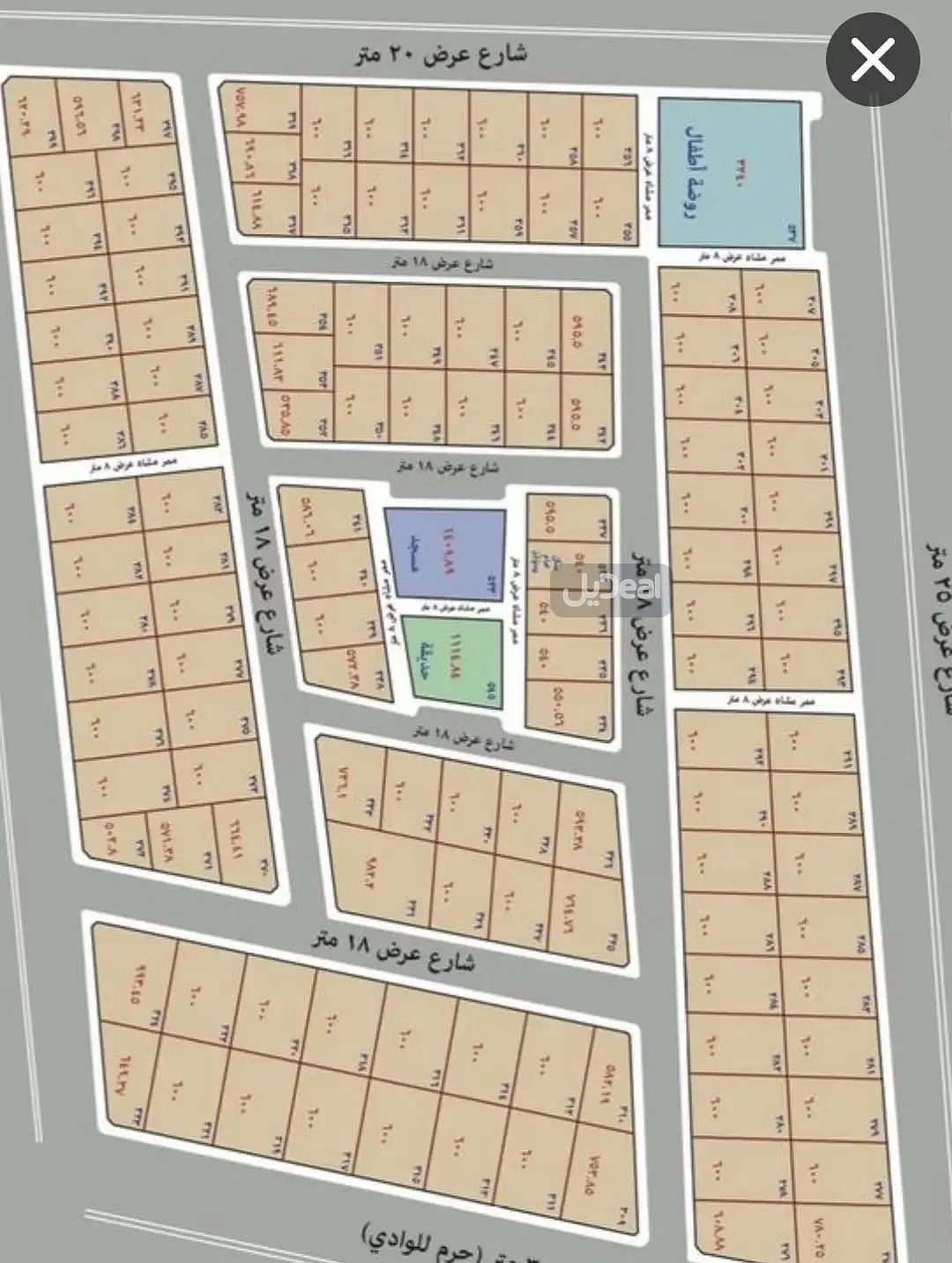• الأرض الأولى: على شارعين 20 م / 18 م