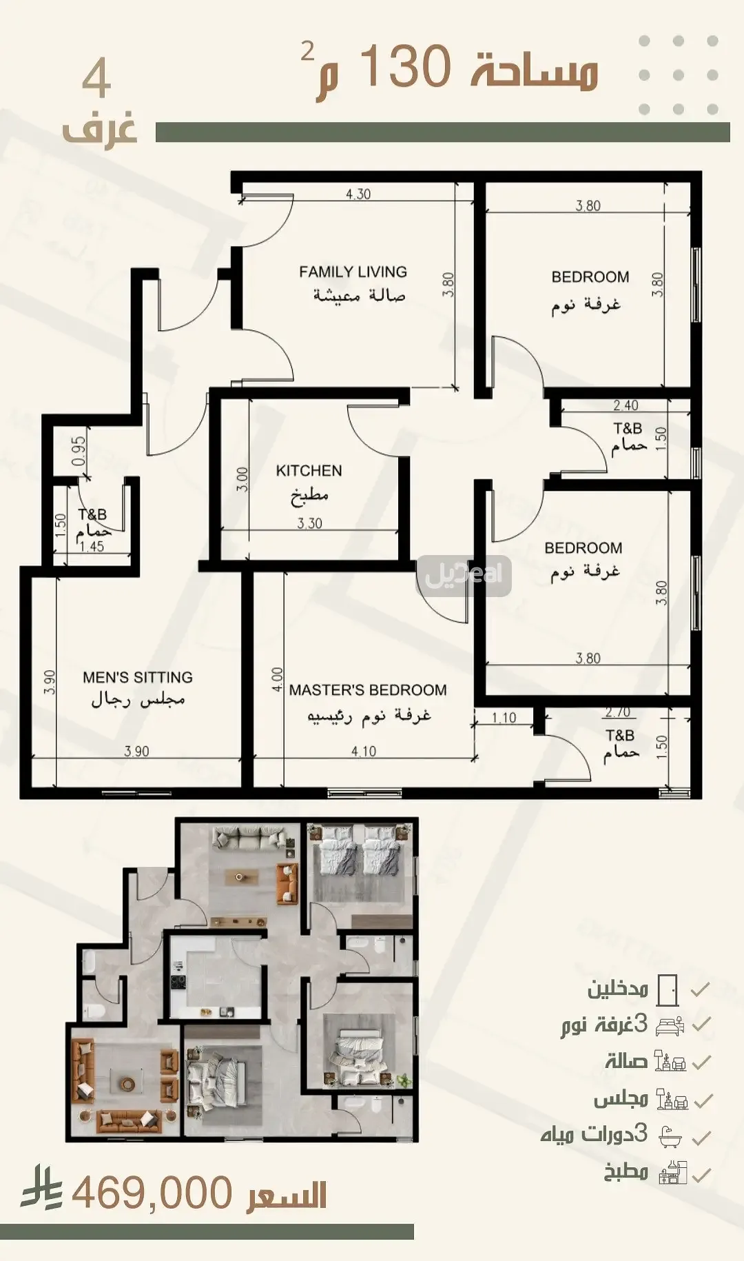 •تبعد عن مجمع العرب ٦ دقايق