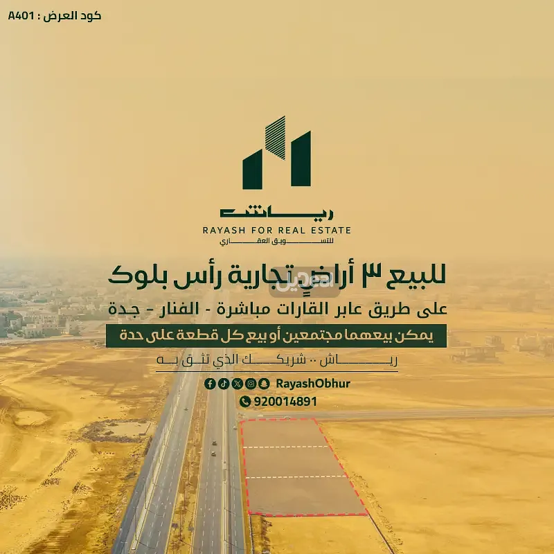 للبيع 3 قطع أراضٍ رأس بلوك تجارية مميزة
