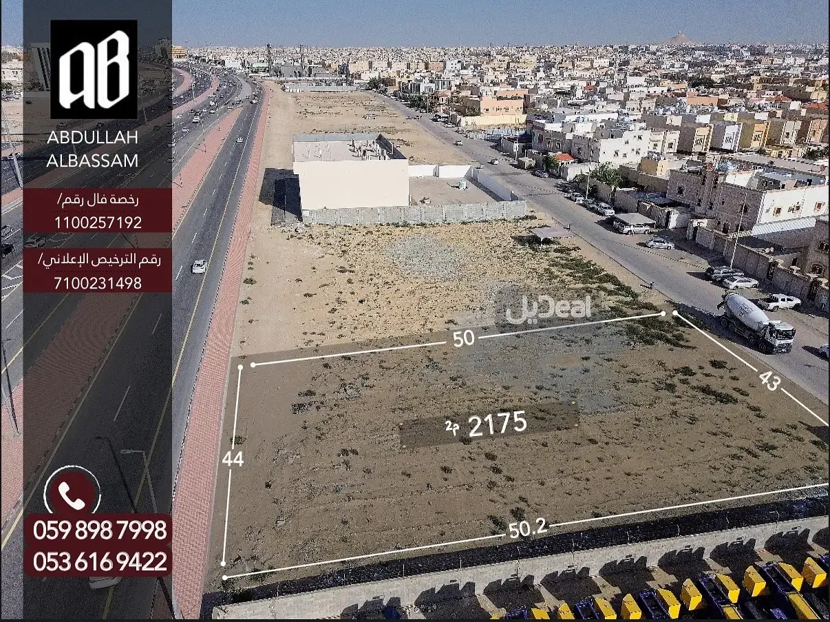قطعة أرض تجارية استثنائية تقع في موقع حيوي ومحوري على طريق الدمام الرياض السريع، وتحديداً في حي طيبة المزدهر. يتميز الموقع بسهولة الوصول وكثافة الحركة المرورية، مما يجعله مثالياً لمجموعة واسعة من المشاريع الاستثمارية الواعدة. المساحة الإجمالية للأرض تبلغ حوالي 2178.9 متر مربع، بأبعاد مميزة (44م × 50م تقريباً)، مما يوفر مرونة كبيرة في التصميم والتطوير