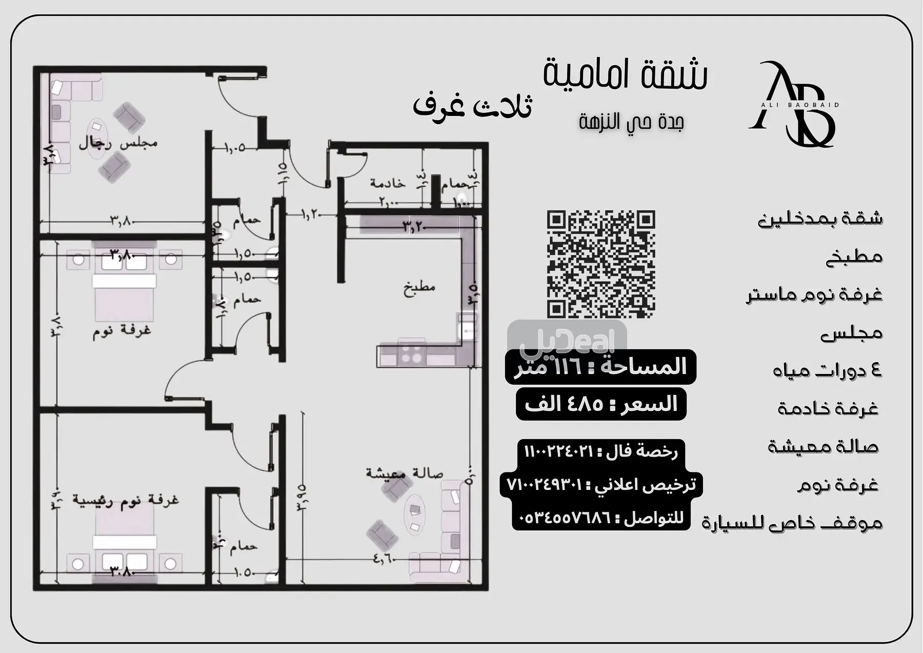 المساحة: 116 م²