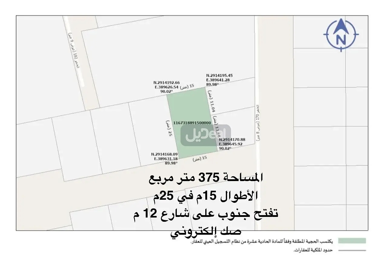 الحد الشمالي أرض بطول 15م