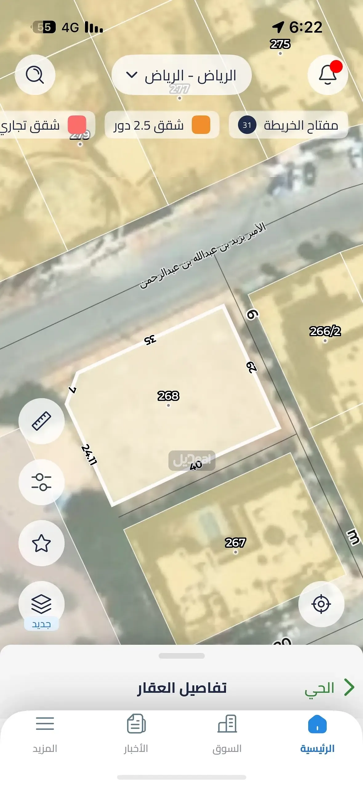 عرض الشارع 25 متر