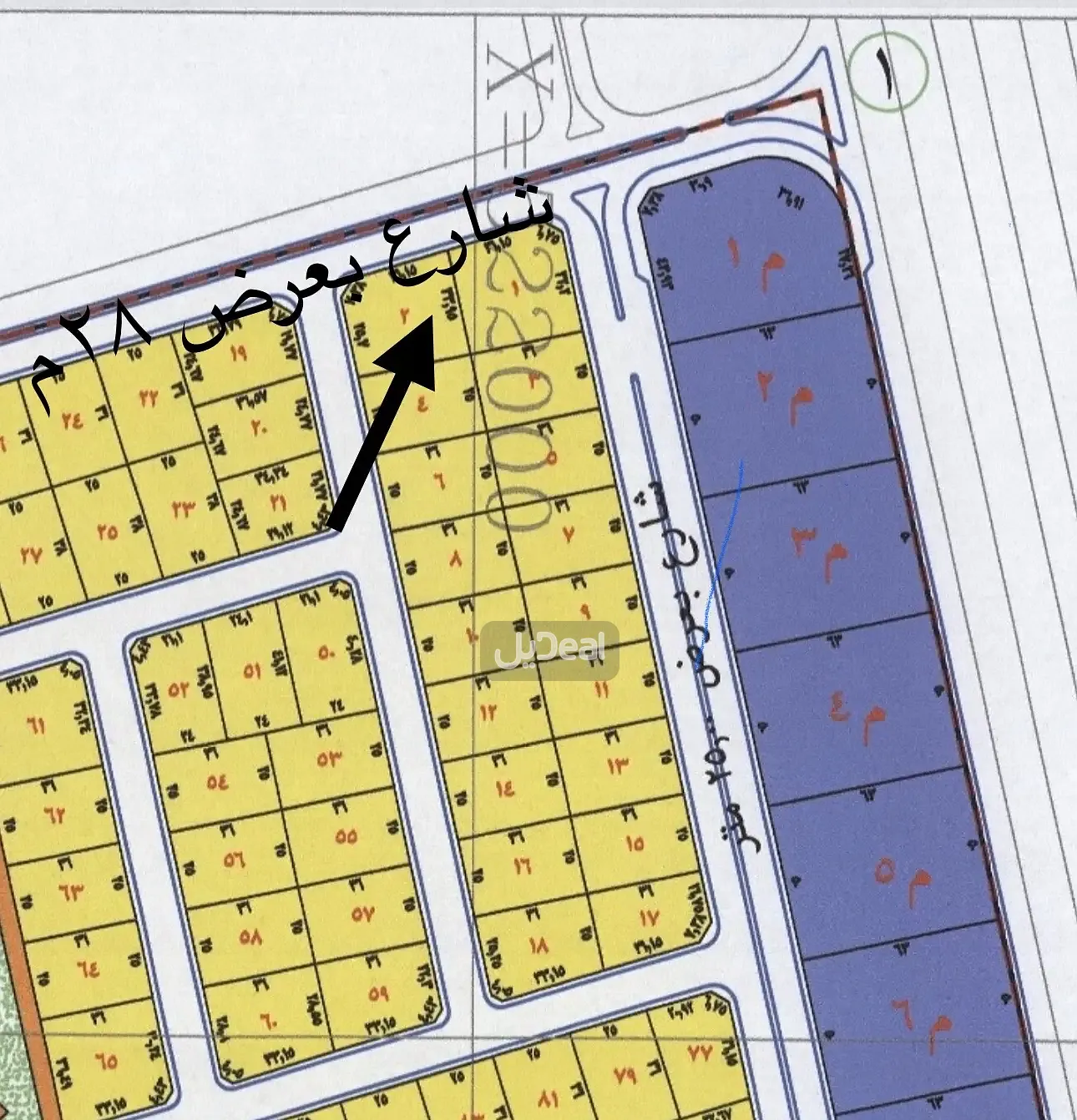 ✨ قطعة مميزة على شارع 28م الفاصل بين ٥٩٨ و ٥٩٧ وضلعها على الشارع 17م