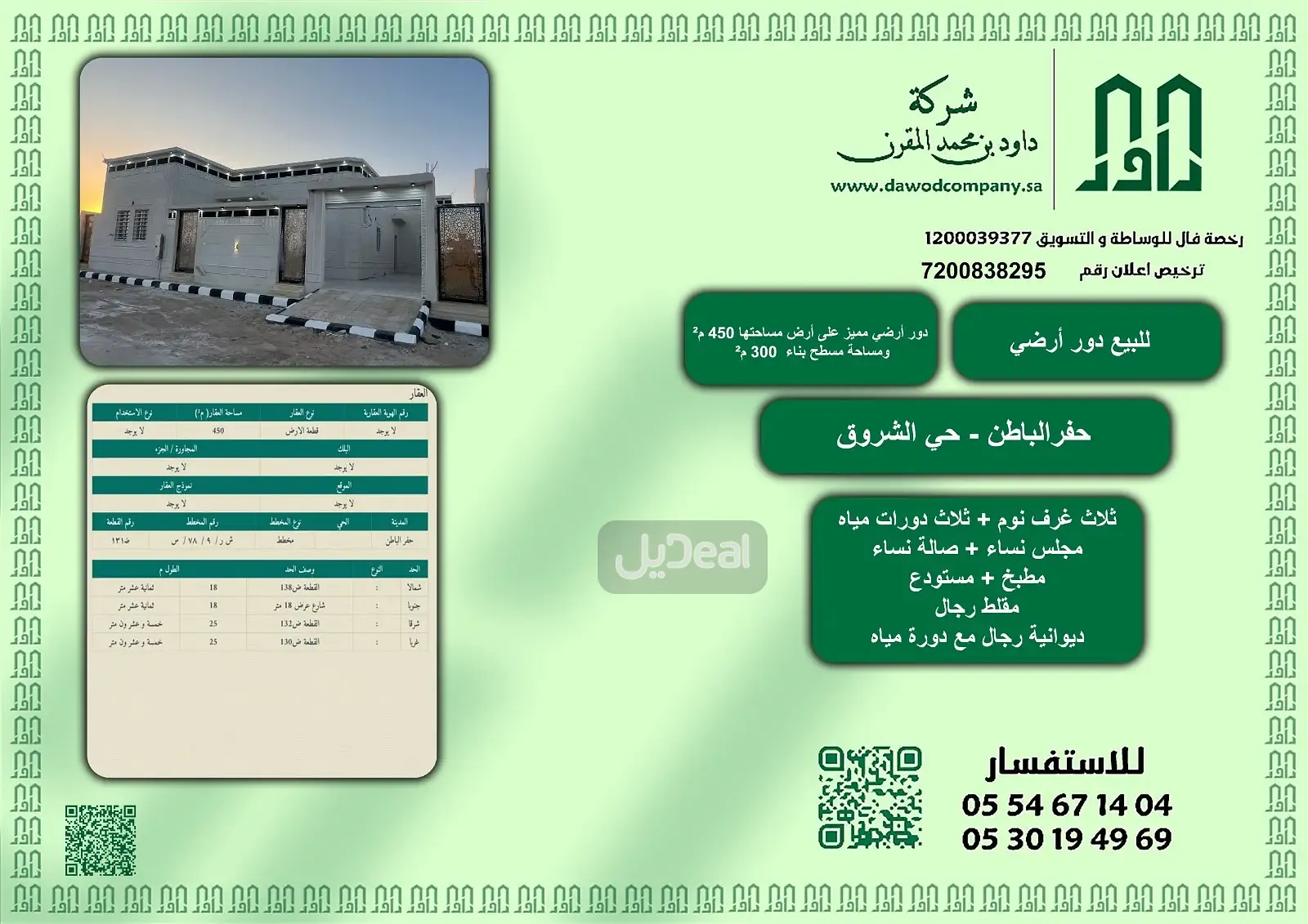 للبيع دور أرضي – حفرالباطن حي الشروق