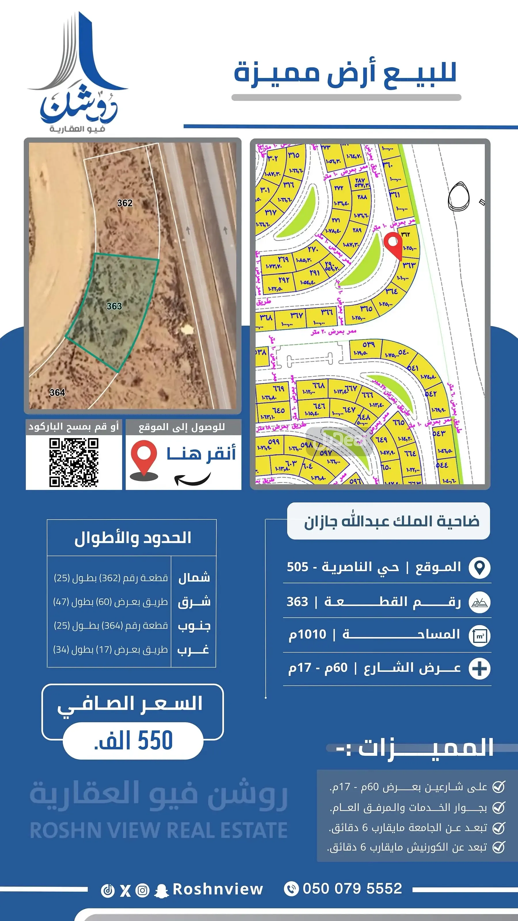 • على شارع شرقي رئيسي بعرض 60م مسفلت .