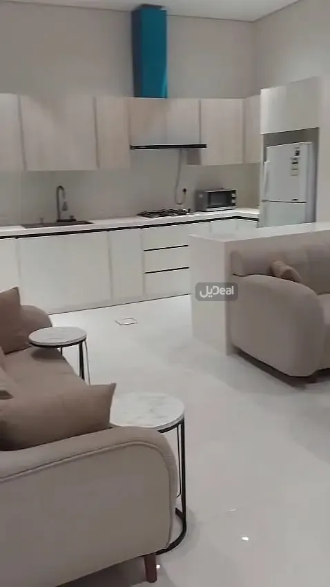 • مطبخ أمريكي راكب بنظام حديث ومفتوح على الصالة.
