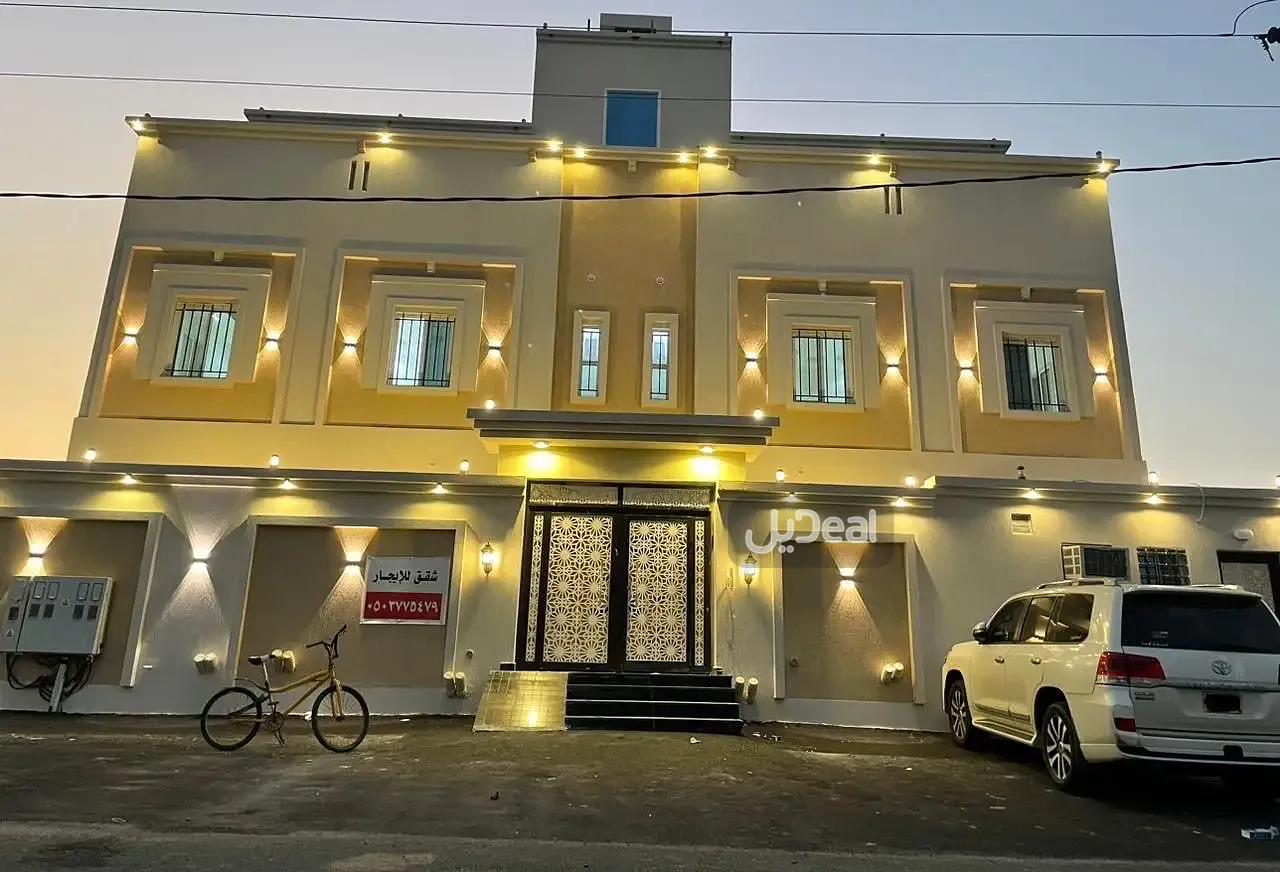شقة بمدخلين الدور الأول مكونة من اربع غرف وصالة ومطبخ وغرفة غسيل وثلاث دورات مياه وخزان ارضي مستقل وعداد كهرباء مستقل