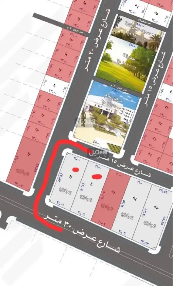 🛣 عرض الشوارع: 30 م و 21 م