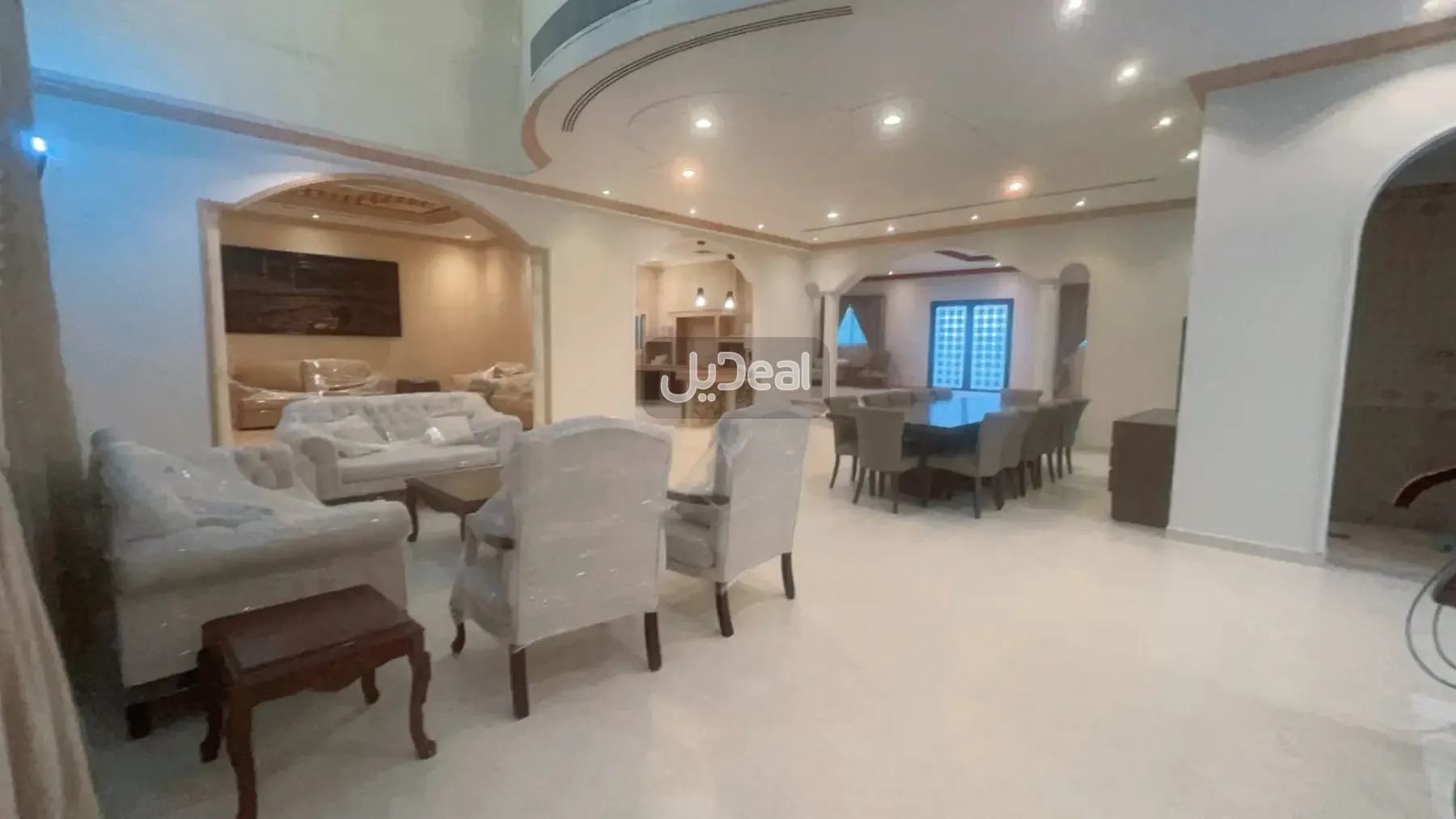 مطبخ جاهز مطل على الصالة + مطبخ داخلي مخفي + مستودع جاهز