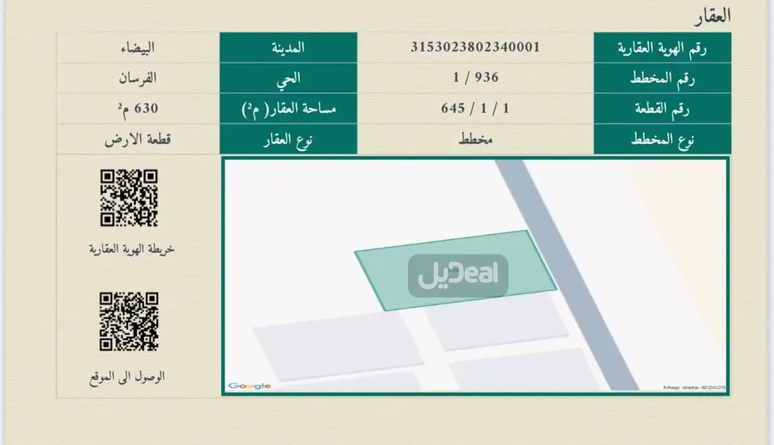 (21م × 30م) وقابلة للتجزئة إلى وحدتين كل واحدة 315م² – مناسبة لمن يرغب ببناء فيلا خاصة أو لمن يبحث عن مشروع بناء واستثمار.