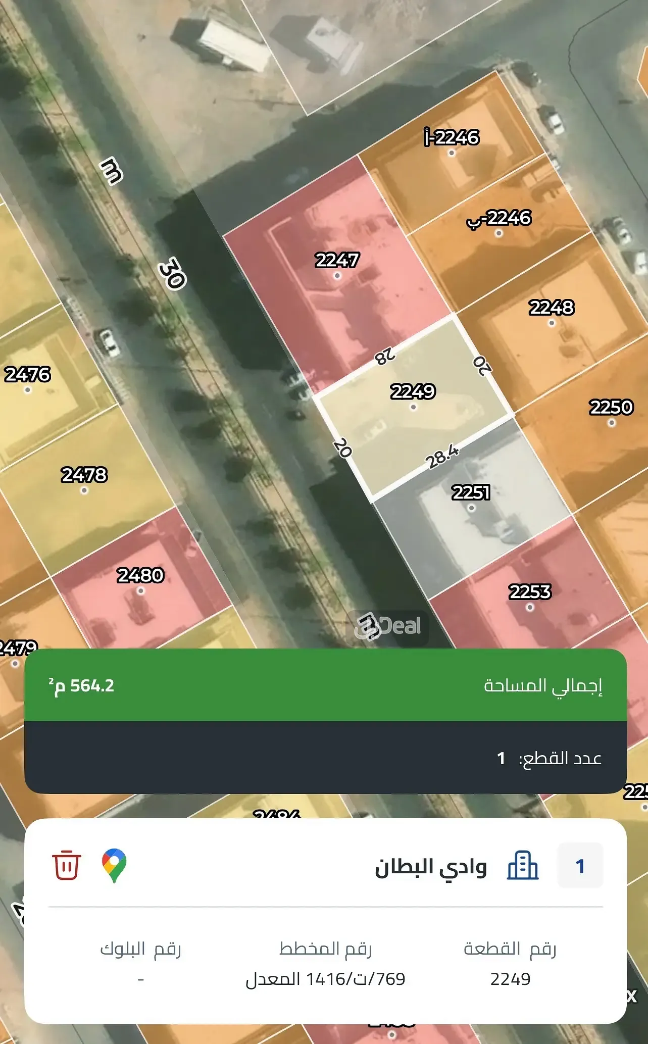• شمالًا: قطعة رقم 2247 بطول 28 م