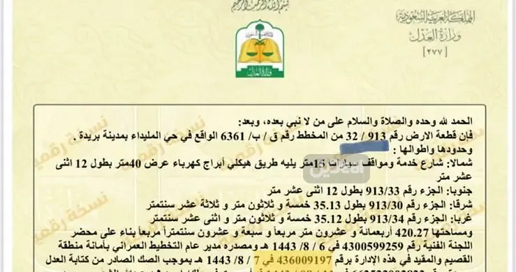 قطعة رقم 913/32 من المخطط رقم ق/ ب/ 6361