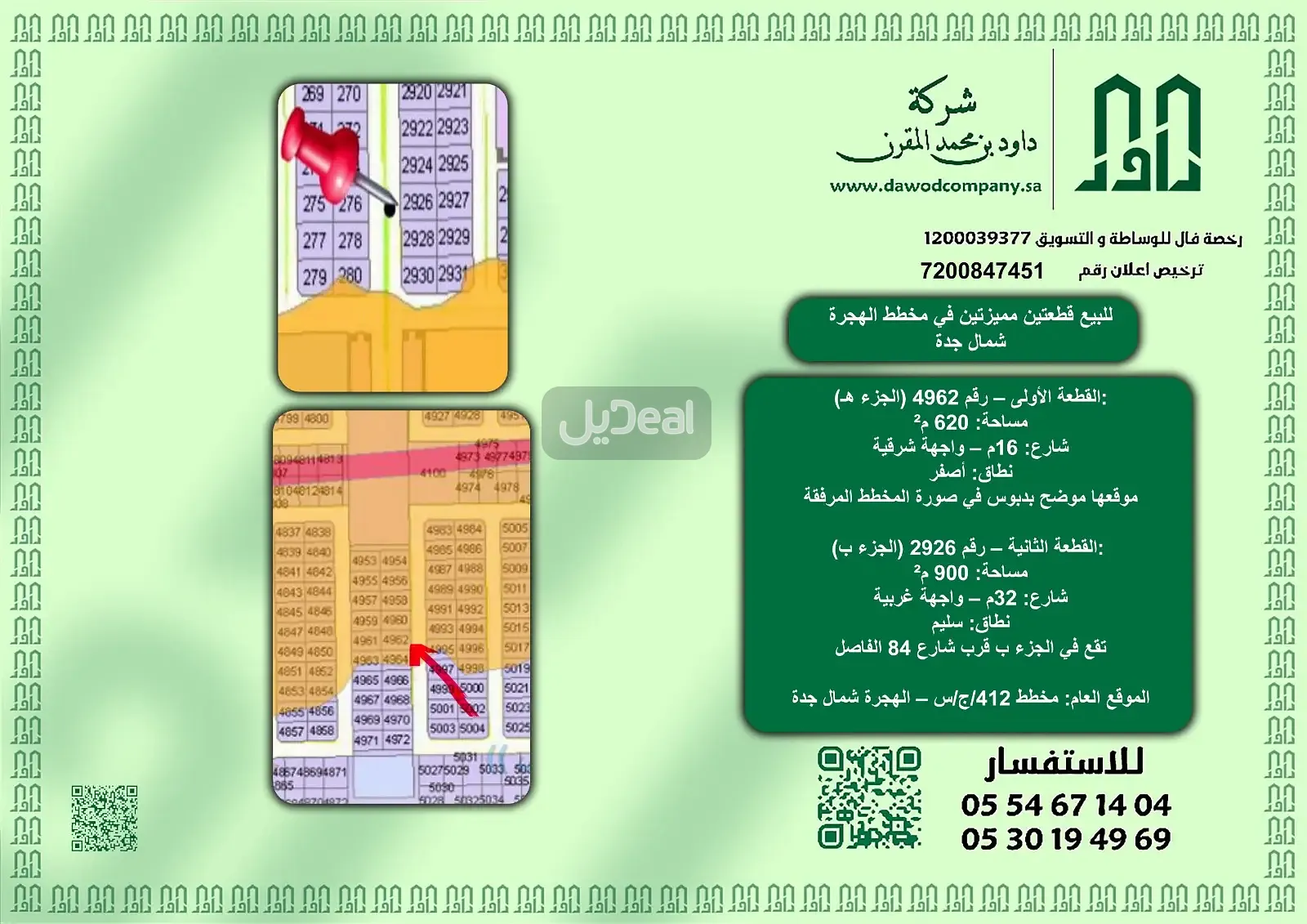 للبيع قطعتين مميزتين في مخطط الهجرة شمال جدة – موقع ممتاز وأسعار منافسة: