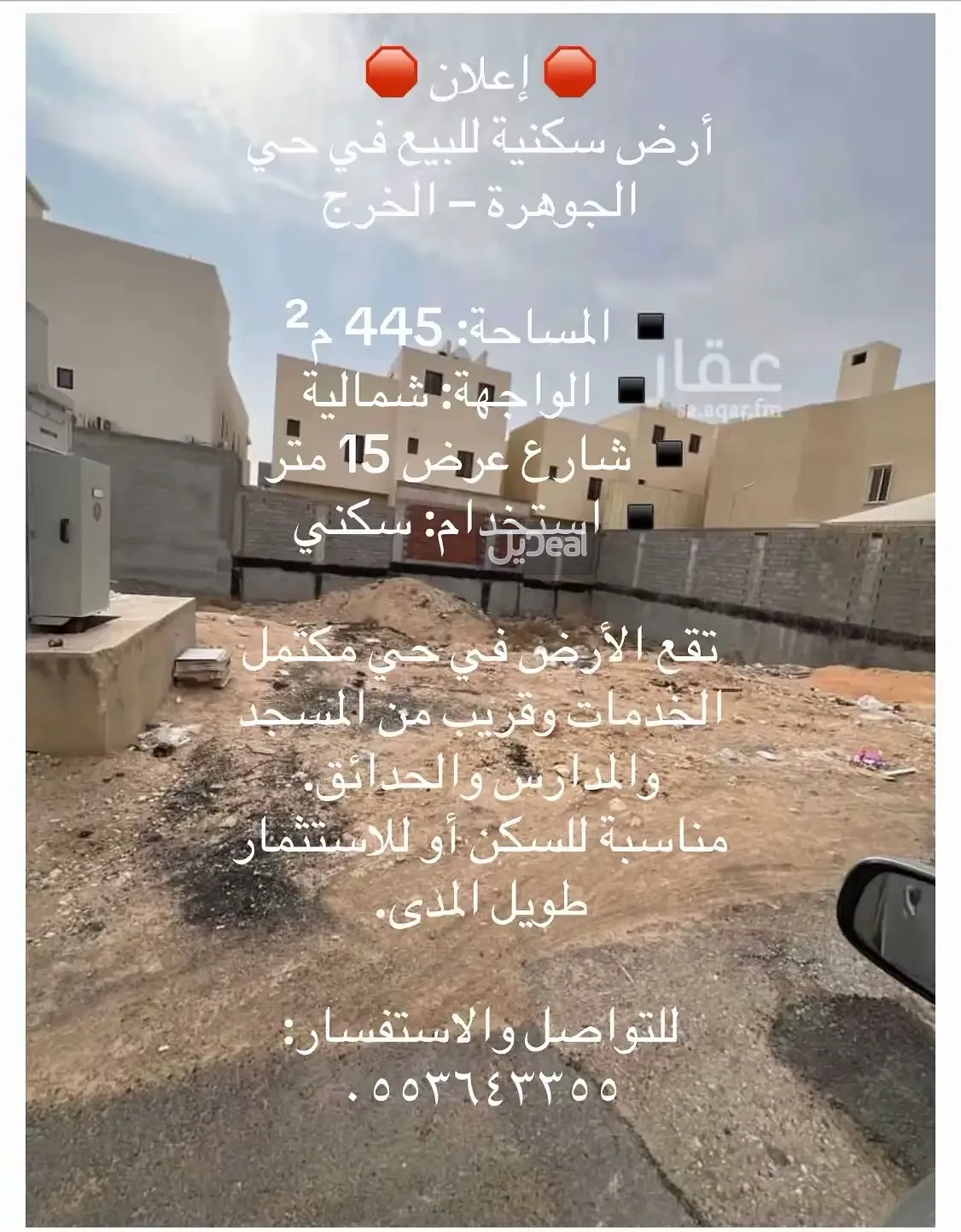 الأرض تقع في حي هادئ وقريب من الخدمات الأساسية مثل المسجد والمدارس والحدائق، مما يجعلها خيار مناسب للسكن العائلي.