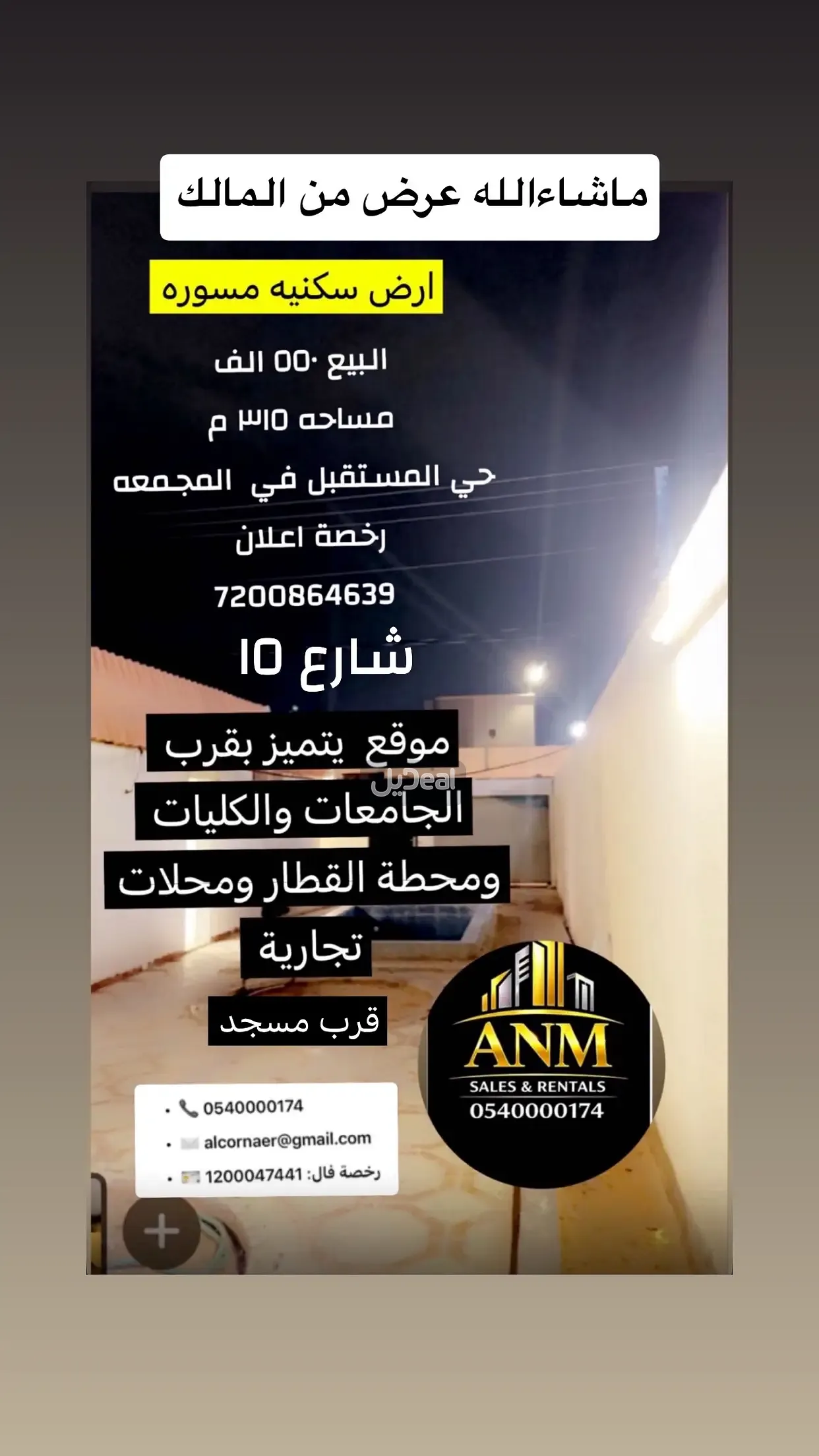 موقع مميز لقربه جامعة المجمعه والكلية التقنيه ومحطة القطار والمولات التجاريه عرض من المالك ..نرحب بالوسطاء