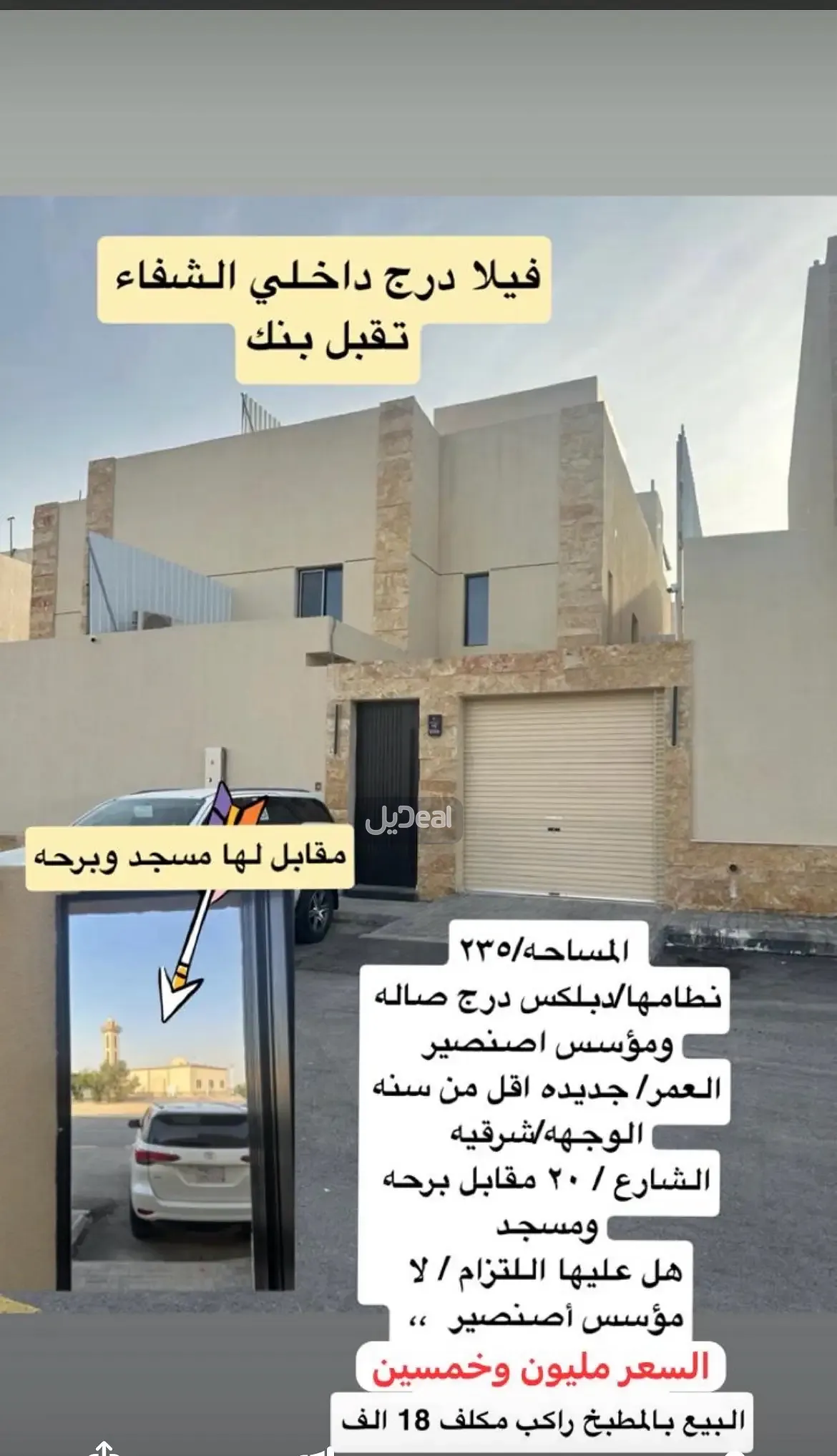 درج داخلي عمرها سنه غير مرهونه تقبل بنك فيها اصنصير موسس ومشب قبال مسجد