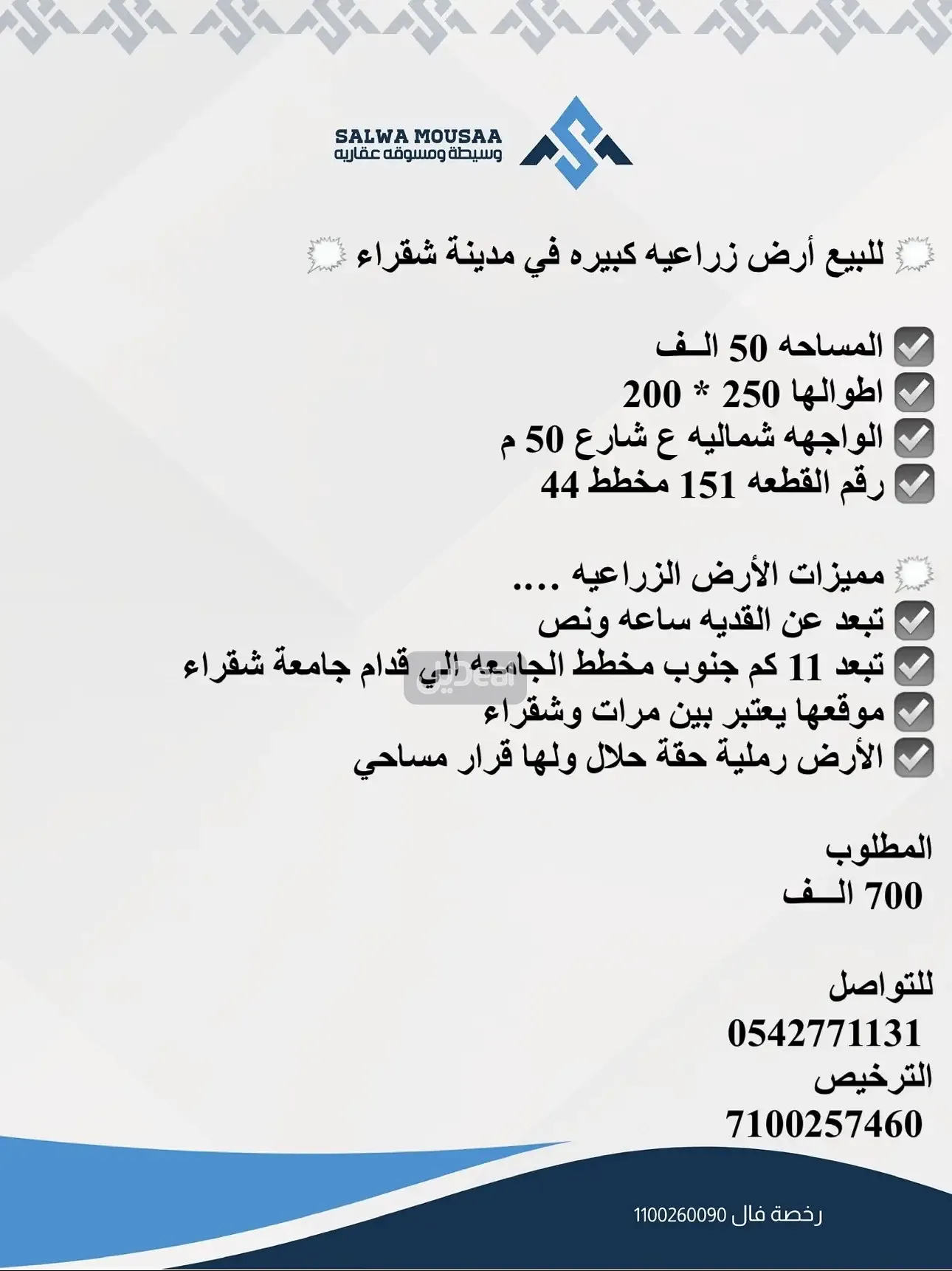 رقم ترخيص الإعلان 7100257460