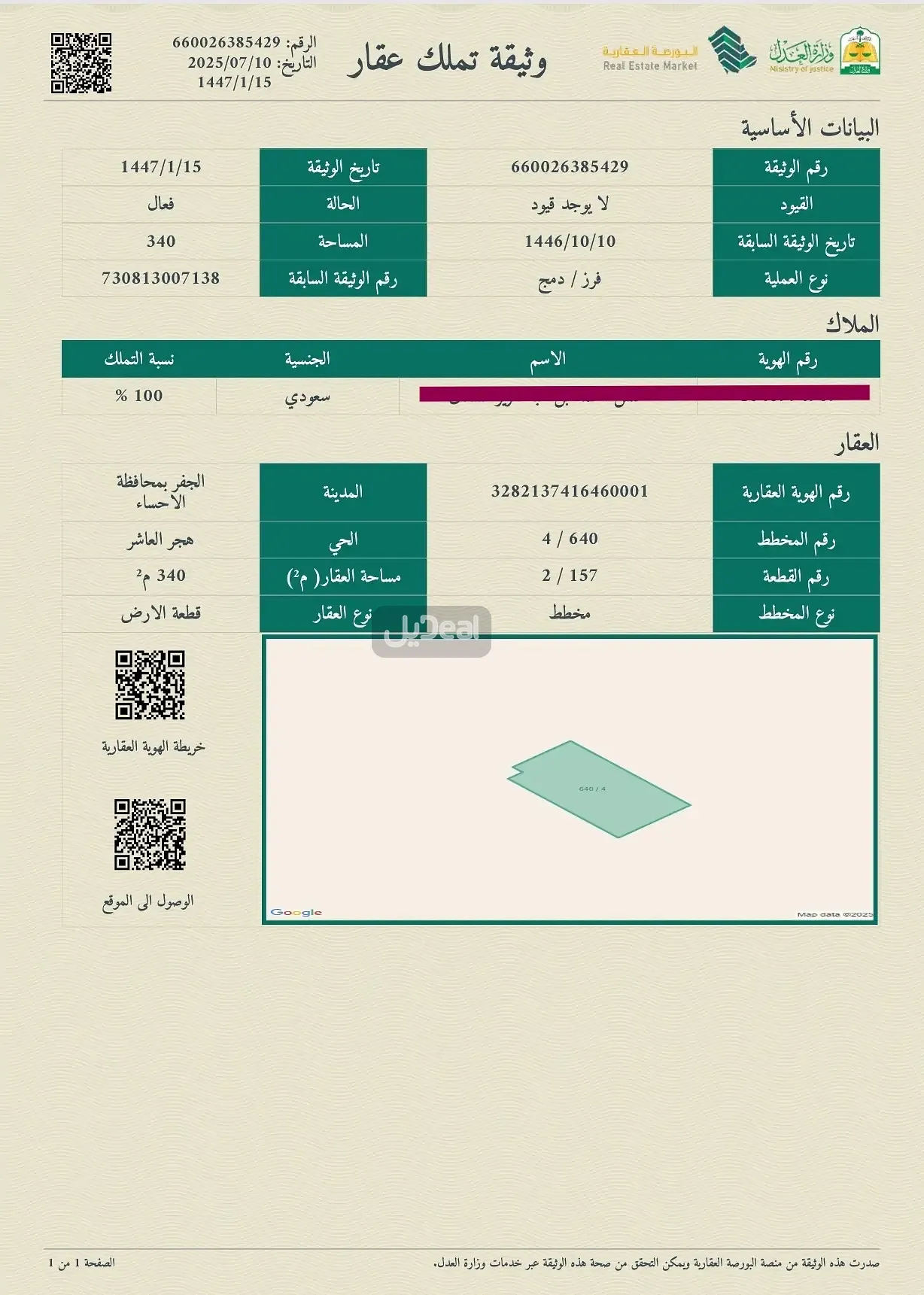 شارع ١٥ شمال مساحتها ٣٤٠ متر