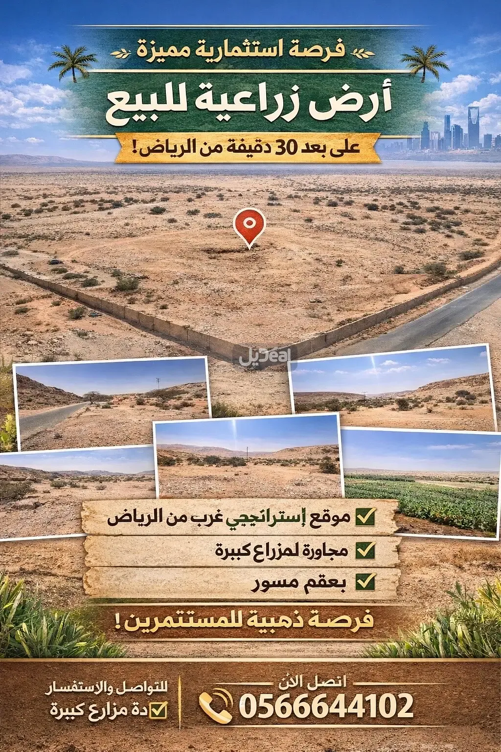 💰 فرصة ذهبية للمستثمرين ورجال الأعمال والراغبين في امتلاك أرض قريبة من الرياض للاستثمار الزراعي أو التطوير المستقبل