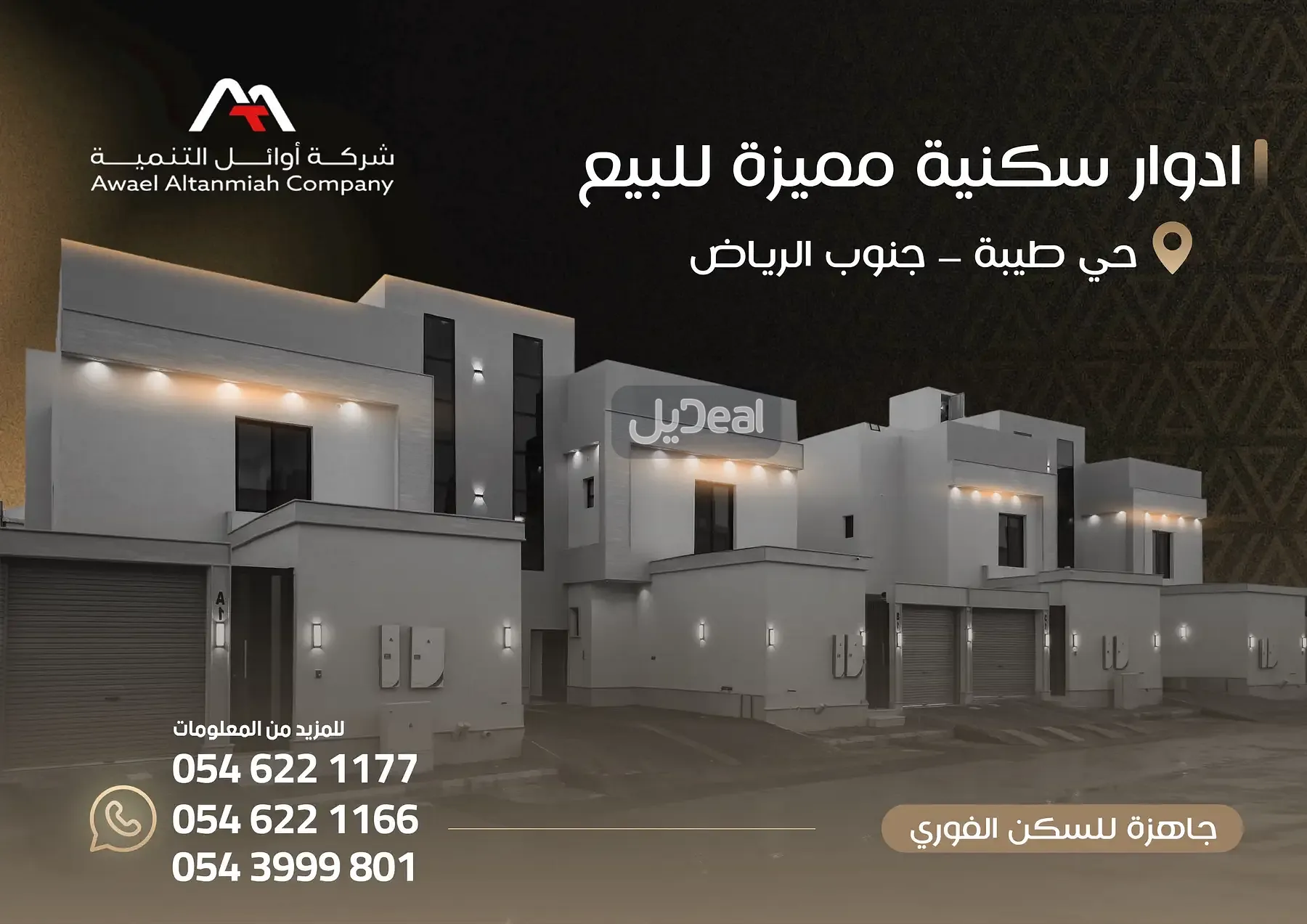 أدوار بمساحات تصل الى 450 م وأسعار للادوار والشقق تبدأ من 450 ألف ريال وتصل الى 840 ألف ريال