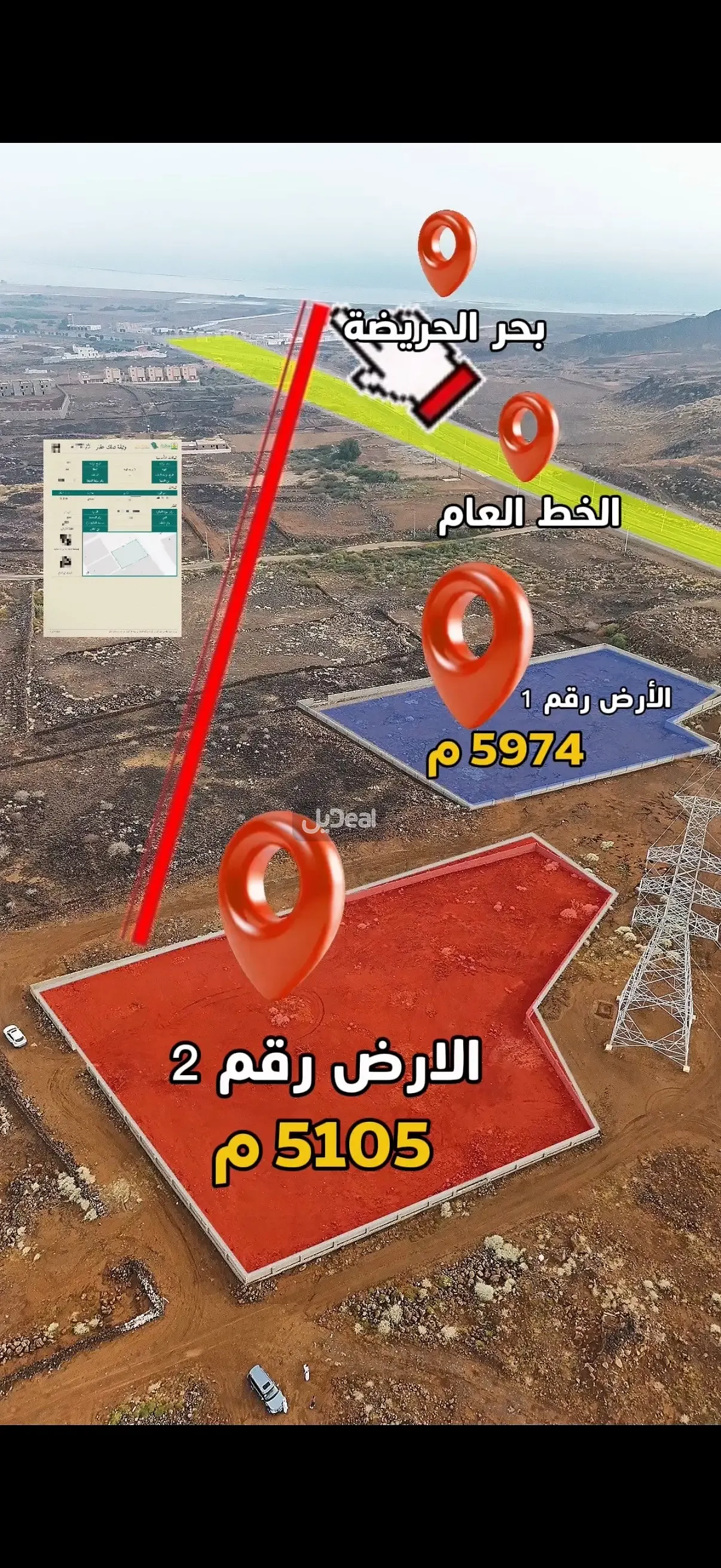 ارض بصك إلكتروني محدث بموقع مميز امام بحر الحريضة بمساحة كبيرة وسعر مناسب جدا قابل للتفاوض وفرصة ممتازة لكل الراغبين والموقع موعود بعدة فرص استثمارية