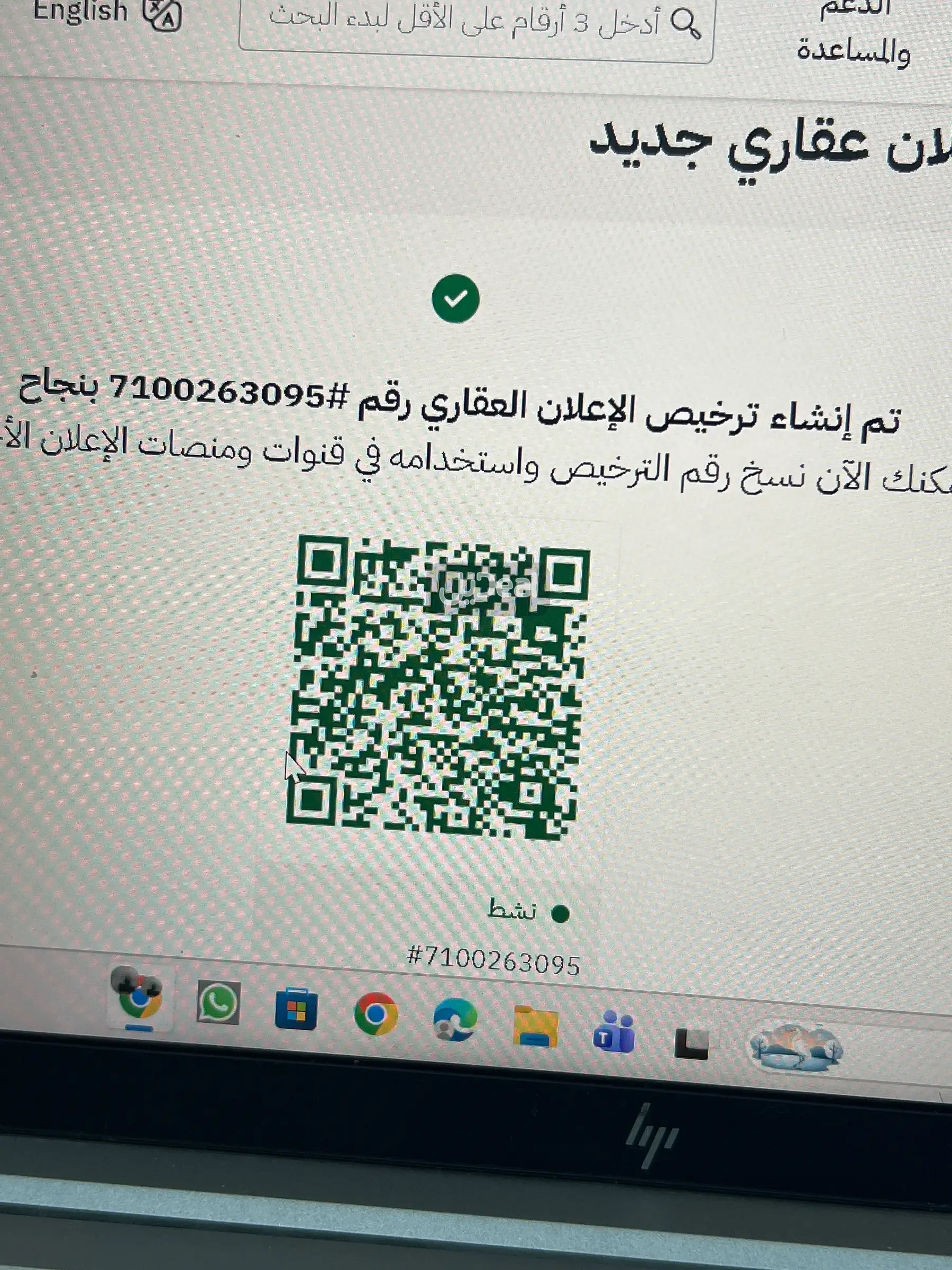 رقم ترخيص الإعلان 7100263095