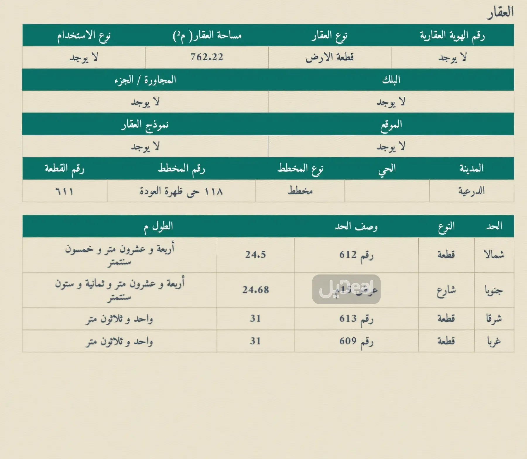 رقم الأرض/ 611