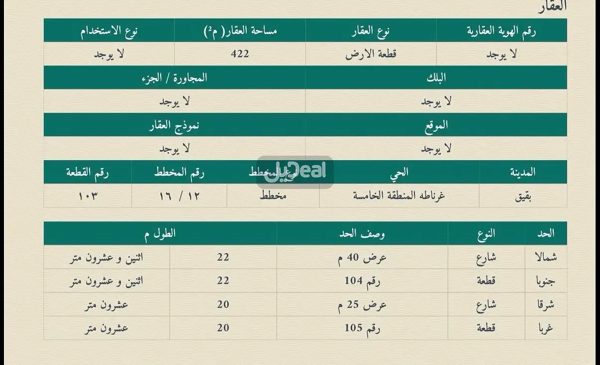 ارض في غرناطه رقم ١٠٣ شماليه شرقيه