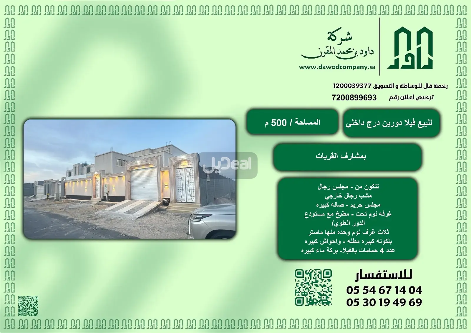 المساحه / 500م