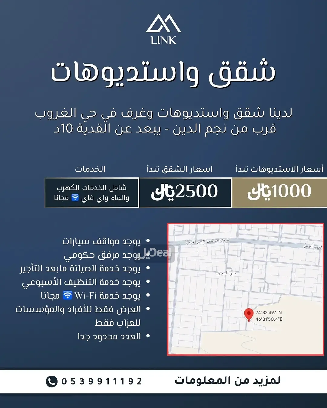 And shared toilet studios starting from 1000 riyals | Inclusive of services