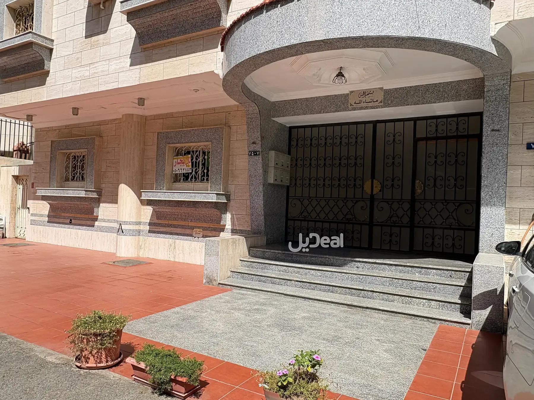 شقة دور ارضي مدخلين مدخل على قسم الرجال مجلس ودورة مياه ومدخل على الصالة وثلاث غرف منها غرفة ماستر بدورة مياه خاصة
