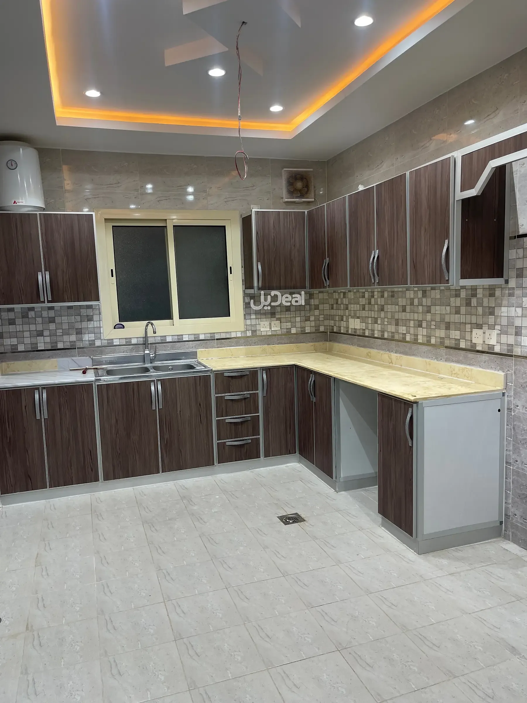 مطبخ راكب ومؤسس لغسالة صحون وغسالة ملابس وفلتر ماء و10 افياش بتوزيع منظم