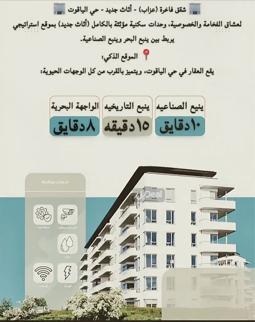 لعشاق الفخامة والخصوصية، وحدات سكنية مؤثثة بالكامل (أثاث جديد) بموقع استراتيجي يربط بين ينبع البحر وينبع الصناعيه وينبع التاريخيه