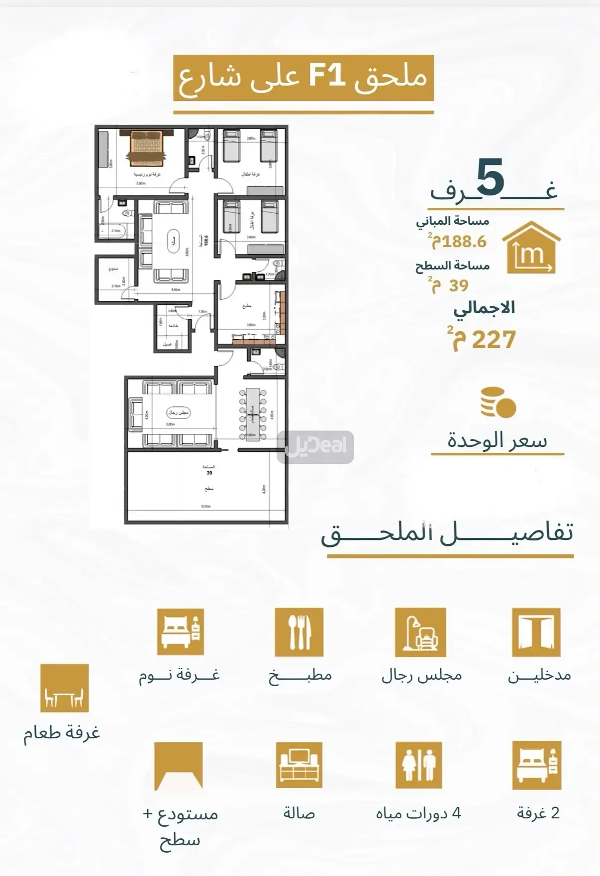 ملحق 5 غرف المساحة 248 م