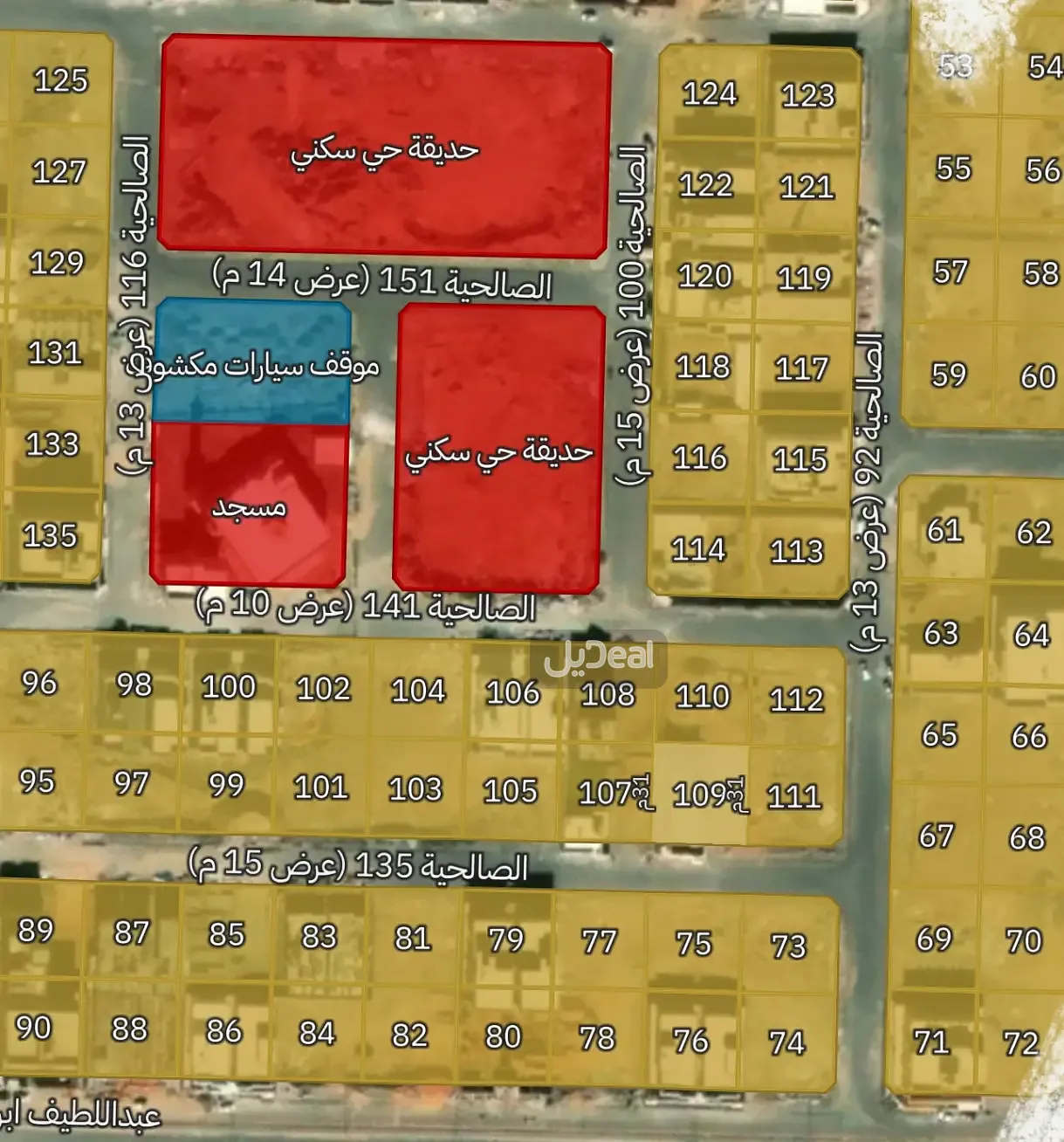 للبيع أرض سكنية – حي الصالحية (المنح) • المساحة: 449.87 م² (حسب الصك) • الواجهة: جنوبية • عرض الشارع: 16 متر • الموقع: بالقرب من مسجد الوالدين، مدارس بنين وبنات، مركز صحي، وجميع الخدمات متوفرة